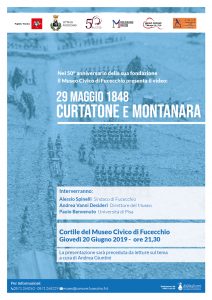 Nel 50° anno dalla fondazione del Museo di Fucecchio, giovedì 20 giugno alle ore 21,30, nel cortile del Museo sarà presentato il videoclip “29 maggio 1848, Curtatone e Montanara” prodotto per fornire al visitatore una descrizione sintetica dello svolgimento della battaglia in cui fu ferito e catturato Giuseppe Montanelli. La realizzazione, che arricchirà gli strumenti multimediali della sala montanelliana del Museo, è stata prodotta in seguito alla mostra che l’Università di Pisa ha dedicato nel 2018 alla memoria della battaglia. Il video ha avuto una proiezione in anteprima nella nuova sala dedicata alla battaglia presso la Domus Mazziniana di Pisa, in occasione dell’annuale ricorrenza del 29 maggio.