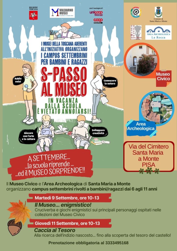 Anche il Comune di Santa Maria a Monte aderisce all’iniziativa promossa dalla Regione Toscana “S-passo al Museo!”, campi settembrini museali  dedicati a bambini e ragazzi che, in attesa della riapertura delle scuole, vogliono divertirsi imparando.