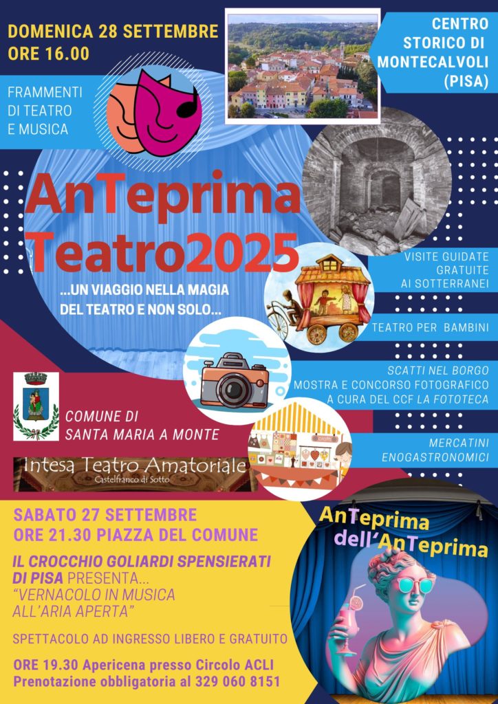 Il teatro che sbarca nel centro storico, trasformato per l’occasione in tanti palcoscenici all’aperto. E’ ciò che avverrà Domenica 28 Settembre a partire dalle 16 fino alle 19.30 nel borgo medievale di Montecalvoli, quando il teatro vivacizzerà il paese con AnTeprima Teatro, iniziativa che in questo 2025 festeggia il suo ventennale. Un’edizione che vedrà la partecipazione di tantissime compagnie teatrali – ben ventiquattro quest’anno –, appartenenti al circuito provinciale dell’Intesa Teatro Amatoriale che si esibiranno con frammenti e flash che andranno ad animare le strade, le piazze e i vicoli, in una sorta di spettacolo itinerante continuo. Inoltre, sarà un’edizione in cui i più piccoli potranno approfittare anche di spettacoli teatrali pensati ad hoc per loro.