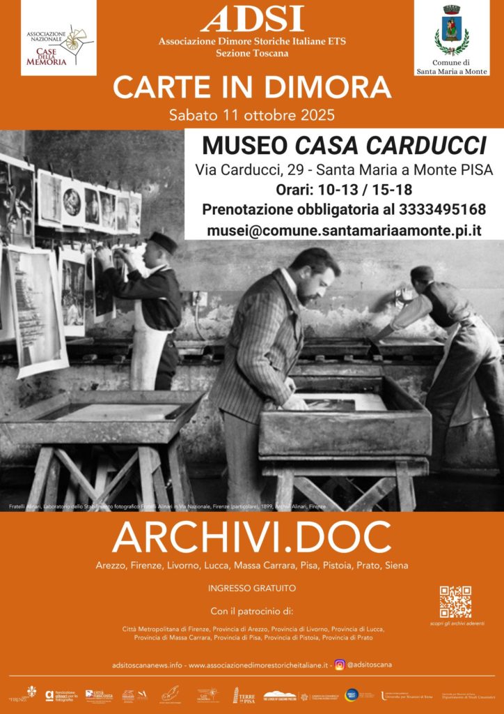 Sabato 11 Ottobre 2025 è in programma la quarta edizione di Carte in Dimora, promossa dall’Associazione Dimore Storiche Italiane, con il patrocinio del Ministero della Cultura.