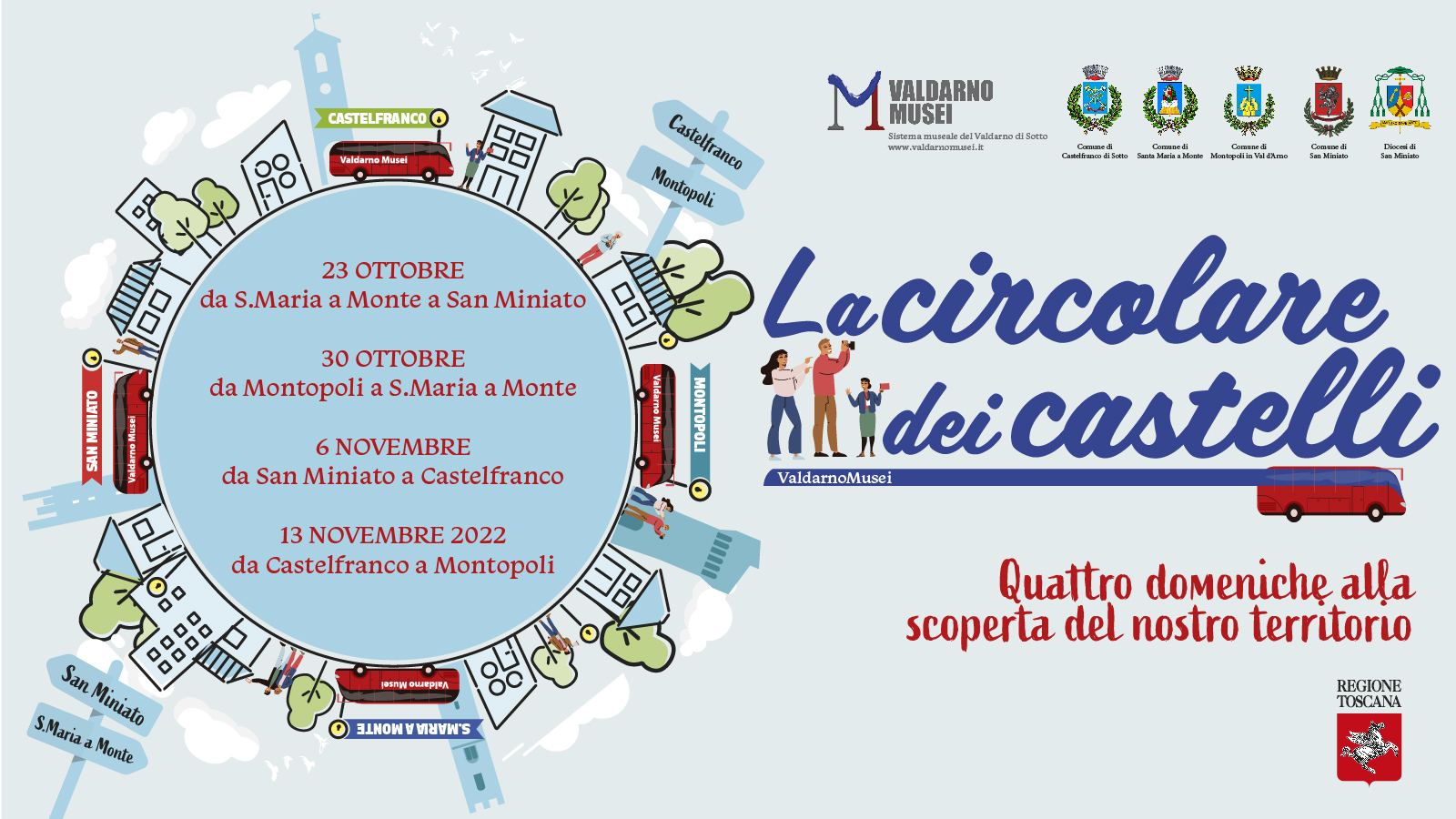 La Circolare dei castelli consiste in un ciclo di visite guidate ai quattro centri storici (Castelfranco, Montopoli in Val d’Arno, San Miniato e Santa Maria a Monte) con trasporto bus/navetta coordinato e gratuito, allo scopo di costituire una nuova opportunità per cittadini e turisti di visitare il nostro territorio e i suoi musei.