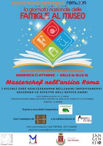 Per la Giornata Nazionale delle Famiglie al Museo, i Musei Civici di San Miniato organizzano un pomeriggio all’insegna della cucina: “Masterchef nell’antica Roma”. I partecipanti potranno vestire i panni degli antichi chef romani e scoprire le abitudine alimentari e i segreti culinari della città eterna e realizzeranno bellissimi impiattamenti seguendo le antiche ricette.