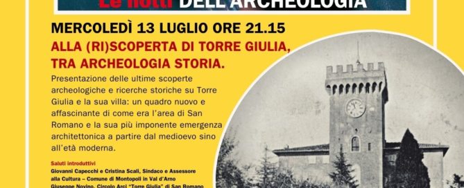 MERCOLEDì 13 LUGLIO ORE 21.15 Circolo Arci “Torre Giulia” di San Romano (Montopoli V/A) Alla (ri)scoperta di Torre Giulia, tra archeologia storia Presentate le ultime scoperte archeologiche e le ricerche storiche su Torre Giulia e [...]