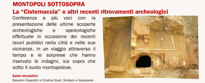 Montopoli SottoSopra - La “Cisternaccia” e altri recenti ritrovamenti archeologici Primo appuntamento delle iniziative realizzate dal Sistema Museale Montopolese nell'ambito della manifestazione Le Notti dell'Archeologia 2022, una conferenza a più voci dove saranno presentate le [...]