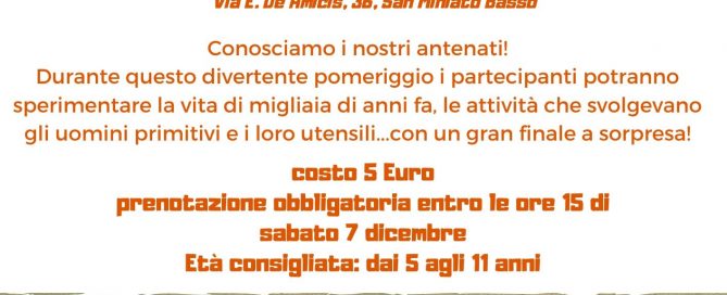 Domenica 8 dicembre dalle ore 15 alle ore 17 si terrà presso il museo della scrittura a San Miniato Basso un laboratorio dedicato alla vita quotidiana degli uomini primitivi e alle loro attività... con sorpresa [...]