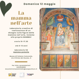 Partendo dall’analisi della Madonna delle Sette Virtù conosceremo e rifletteremo insieme su alcune rappresentazioni di madri nella storia dell’arte per celebrare insieme la loro festa. Alla fine i bambini potranno realizzare, insieme alla loro mamma, una rappresentazione personalizzata della madre.