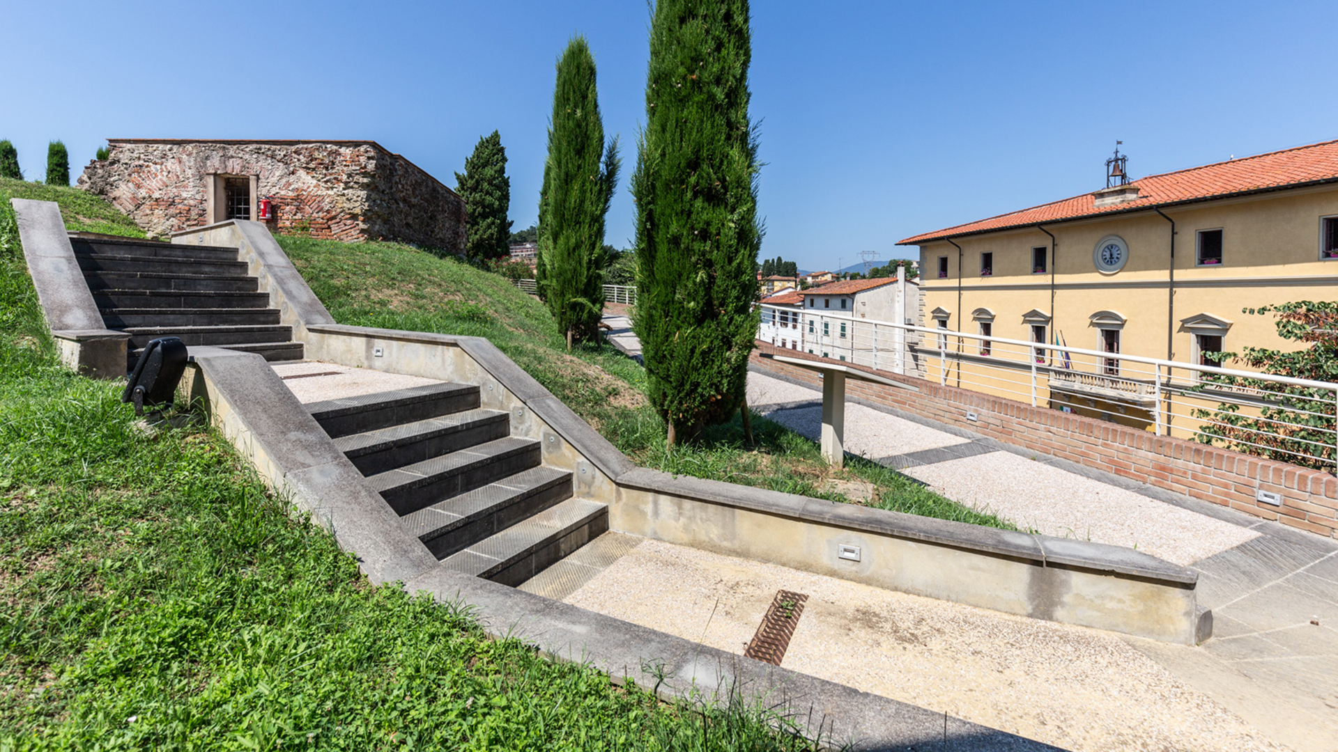 The most obvious rupture in fortress’s buildings’ history occurred in 1327 when, in the wider context of the heated conflict between the Guelphs and Ghibellines, Santa Maria a Monte, then still within the sphere of influence of Guelph Lucca, fell to the Florentine army, which occupied and razed the parish church of the Rocca fortress, together with all the buildings belonging to it. From 1335 the Florentines then proceeded to reconstruct the fortress on top of the hill and three perimeters of the existing defensive walls in order to ensure control of the area. And it was in this specific context of Florentine redesign of the castle area (including the original parish church) that the medieval quadrangular cistern, dating back to the Florentine reconstructions of the 14th century, should be included. Mentioned in the Statute of 1391, the cistern was designed and built for the purpose of storing drinking water, a key item for the military garrison that had to be able to withstand possibly prolonged sieges by their enemies. Originally, this building had to be buried a few metres underground, as can be deduced from the presence of the adjoining well for water adduction/collection. This last small structure, of almost cylindrical shape, was built using a mix of techniques by applying a single layer of building material against the virgin rock, although the part that stood proud from the ground had to be more robust.