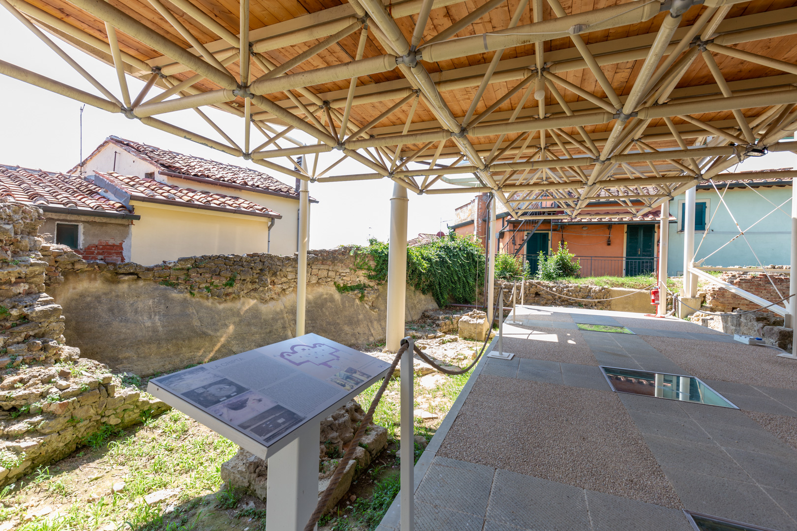 The archaeological excavations carried out on the Rocca fortress since the mid-eighties of the 20th century have revealed a real “palimpsest”, on which there were numerous phases of construction typical of the site’s historical development. Starting from the display of a pre-Roman settlement (8th to 1st centuries BC) as evidenced by the postholes ascribable to hut dwellings, the visitor then moves on to the principal religious building of the village – an 8th century Lombard oraculum dedicated to Maria Assunta and originally dependent on the parish church of Sant’Ippolito in Anniano, dating back to the 4th century and situated on the plain along the course of the Arno. During the Carolingian period (9th century) the church was then equipped with a second pulpit, to the west, dedicated to St. Genesius, a saint much revered in Lucca. Inside the apse, in the central axis with respect to the curvature of the wall, the excavations have uncovered a high-status burial, probably of a member of the Lombard ecclesiastical dynasty. Once the title of parish church had been obtained around the middle of the 10th century along with the transfer of baptismal prerogatives from Sant’Ippolito, as confirmed by the presence of a font, and also with the establishment of a proper rectory (10th century) made up of 14 clergymen, it then became necessary to build an extension to the church towards the east, traces of the triapsidal transept of which still remain. After a further expansion of the building around the end of the 12th century, the church was partly dismantled in the mid-14th century, when the Florentine rule had become more established.