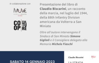 Vi aspettiamo il prossimo 14 gennaio alle ore 16.00 al Museo della Memoria per la presentazione del libro di Claudio Biscarini " LA STRADA PER L'ARNO DEI BLUE DEVILS" Il [...]