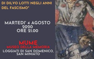 MARTEDÌ 4 AGOSTO ORE 21 AL MUME_MUSEO DELLA MEMORIA Incontro con il pittore Luca Macchi "Gli affreschi del Museo della Memoria: la pittura di Dilvo Lotti negli anni del fascismo". [...]