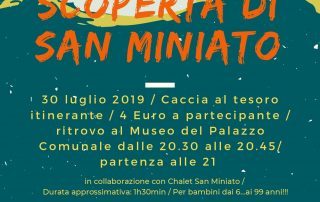 CACCIA AL TESORO ITINERANTE PER SAN MINIATO PER GRANDI E PICCINI!! Quando? martedì 30 luglio A che ora? ritrovo dalle 20.30 alle 20.45 al Museo del Palazzo Comunale di San [...]