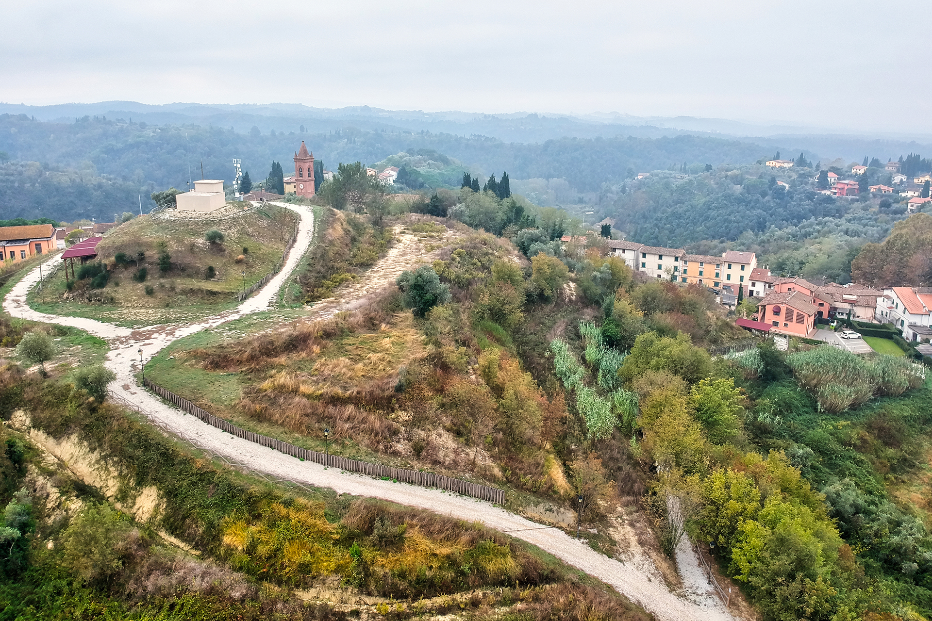 La passeggiata alla scoperta dell’area archeologica prende avvio dalla tomba etrusca detta “Gina” e segue l’antica strada lungo la collina passando davanti alla notevole fornace per mattoni di epoca medievale, fino a salire in sommità alla possente rocca del “Bastione”. Da qui si possono ammirare la splendida pieve medievale di Santa Maria Novella, le colline pisane punteggiate dagli altri antichi abitati e la vallata sottostante, fino all’Arno e al mare.