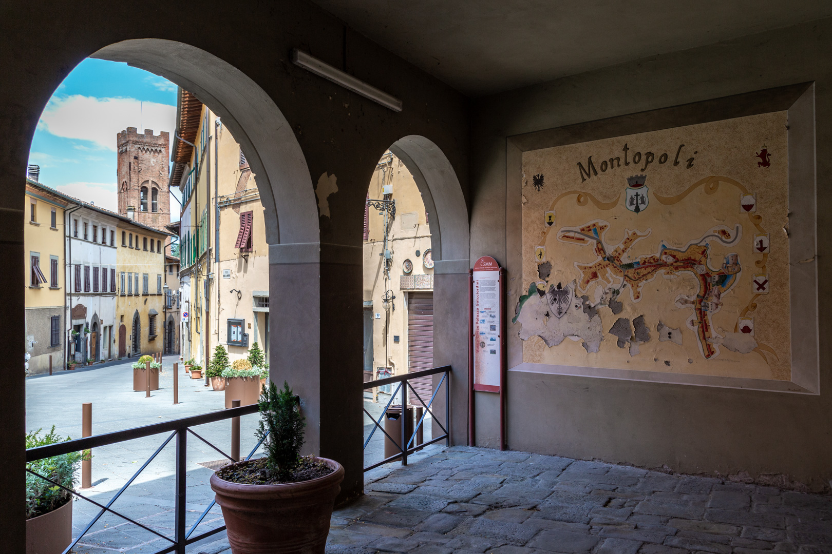 Il castello di Montopoli conservò grande importanza strategica per quasi tutta l’epoca medioevale. Restò sotto la giurisdizione del vescovo di Lucca fino al 1162, quando fu assegnato dall’imperatore Federico di Svevia alla fedele Pisa ghibellina. Lucca, nemica atavica di Pisa, non accettò lo smacco e si alleò con Firenze, astro nascente della politica toscana. Montopoli si trovò quindi al centro di ripetute e aspre contese tra Pisa e Firenze; Nel 1222 l’esercito fiorentino affrontò quello pisano a Castel del Bosco e lo sconfisse pesantemente, lasciando molti morti sul campo e facendo 1200 prigionieri. Fu imposta a Pisa la restituzione del castello al vescovo lucchese, ma i pisani quindici anni più tardi lo riconquistarono. Ciò determinò un nuovo intervento dell’esercito fiorentino, che nella battaglia di Pontedera inflisse ai pisani una nuova, dura sconfitta nel 1259. Nel 1274 Giovanni Visconti, giudice di Gallura, potente cittadino guelfo pisano, dopo essersi alleato con fiorentini e lucchesi, pose l’assedio a Montopoli costringendo gli abitanti a venire a patti con lui e diventando il signore del Castello. Questa alternanza fra la dominazione Pisana e Fiorentina durò fino al 1349, quando Montopoli si sottomise volontariamente a Firenze, che ne fece sede di un proprio vicariato e di una guarnigione stabile, che si oppose vittoriosamente a nuovi tentativi di conquista, fra cui l’assalto di Castruccio Castracani nel 1328 e la battaglia di San Romano del 1432.