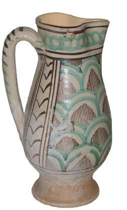 Esso è dipinto sulla pancia di un bel boccale in “maiolica arcaica”: un tipo di ceramica smaltata in bianco e decorata in bruno e verde, prodotta a Pisa e poi nel Basso Valdarno a partire dai primi decenni del Duecento.