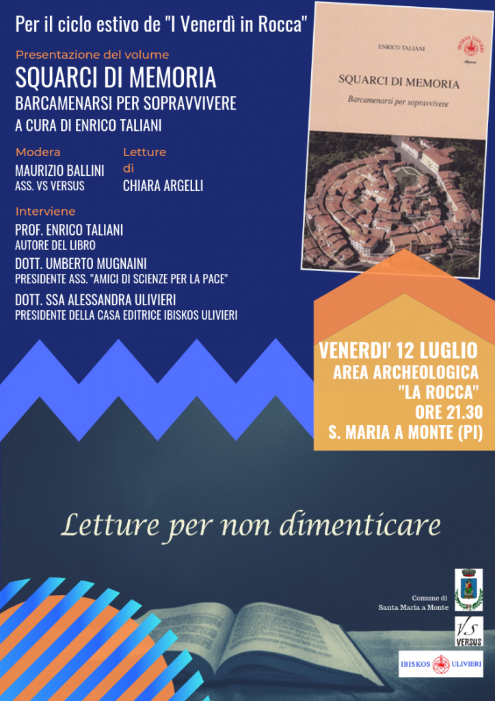 Dopo conferenze, concerti e teatro, Venerdì 12 Luglio la Rocca ospiterà la presentazione del libro Squarci di memoria. Barcamenarsi per sopravvivere, edito da Ibiskos Ulivieri e scritto dal Prof. Enrico Taliani. La pubblicazione raccoglie, 75 anni dopo quegli avvenimenti, la testimonianza di chi, ragazzino, venne sfollato proprio a Santa Maria a Monte.