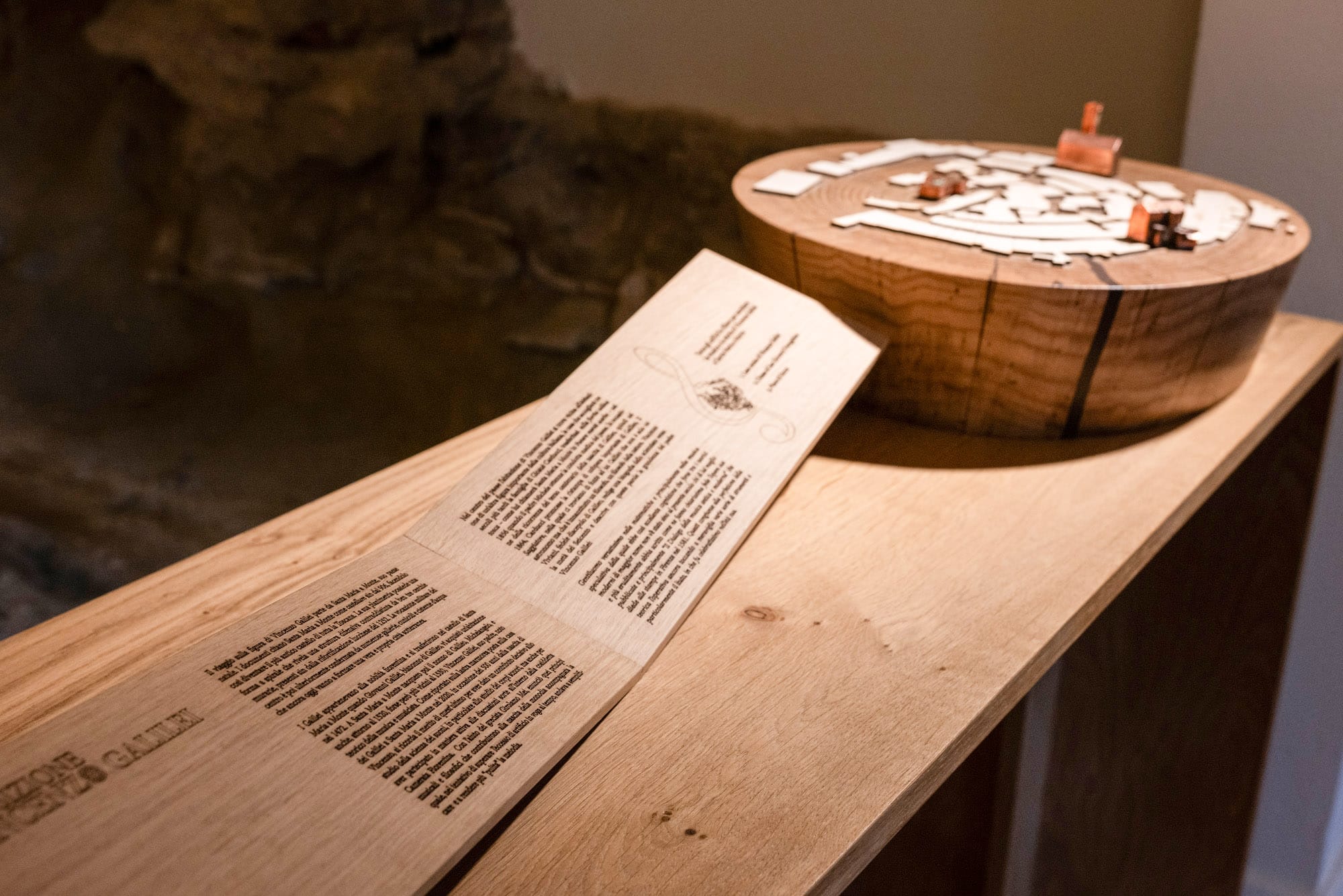 All’inizio una postazione interattiva mostra la mappa spiraliforme dell’antico castello con segnalati tre edifici 3d simbolici che collegano Vincenzo al borgo. Questi ultimi, se toccati, fanno iniziare brevi video esplicativi realizzati in collaborazione col Museo Galileo di Firenze e con I Passi Sparsi ensemble. Tali filmati sono finalizzati ad introdurre il visitatore alla figura di Vincenzo Galilei, facendo emergere sia il legame con il suo luogo natìo sia il suo portato teorico musicale.