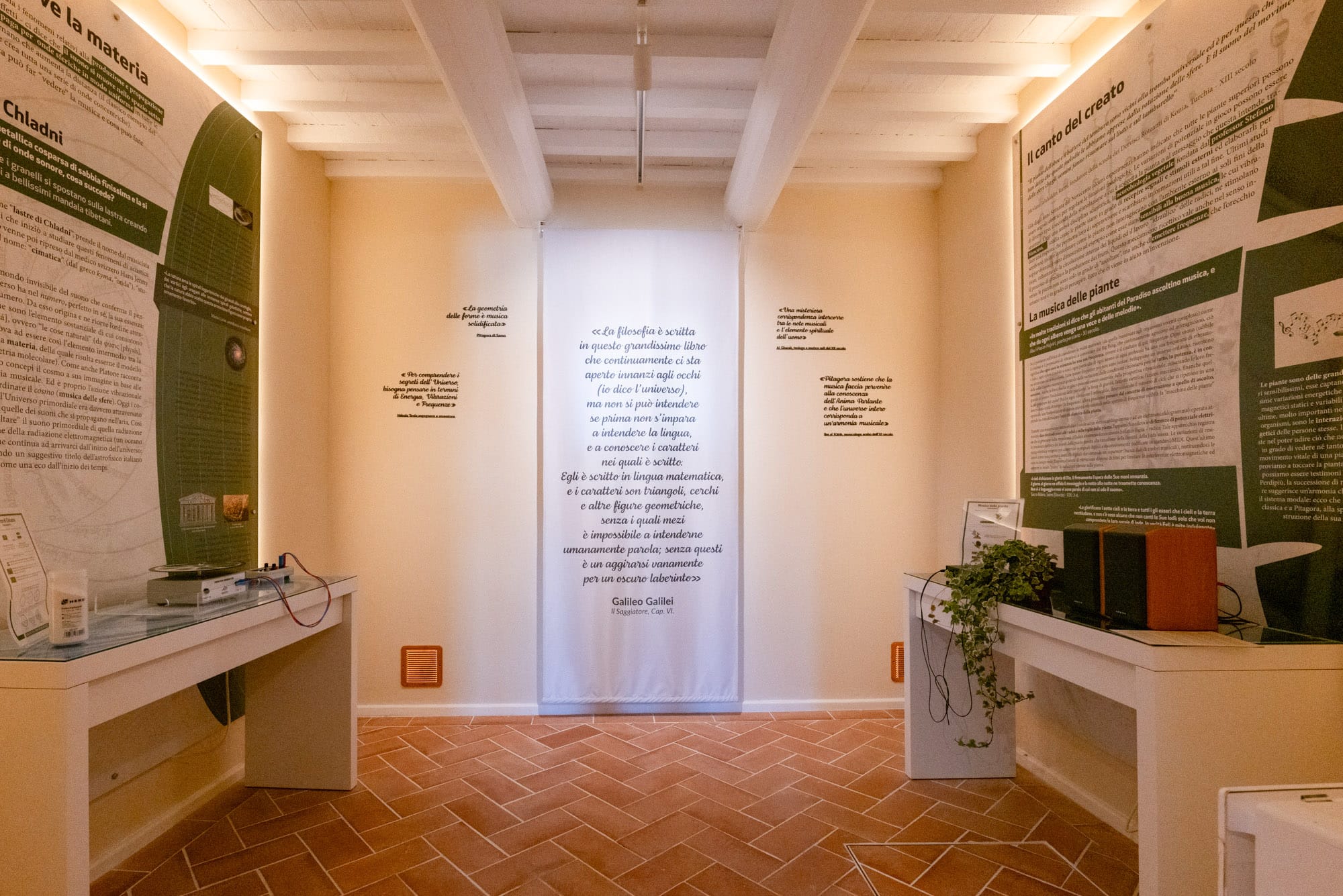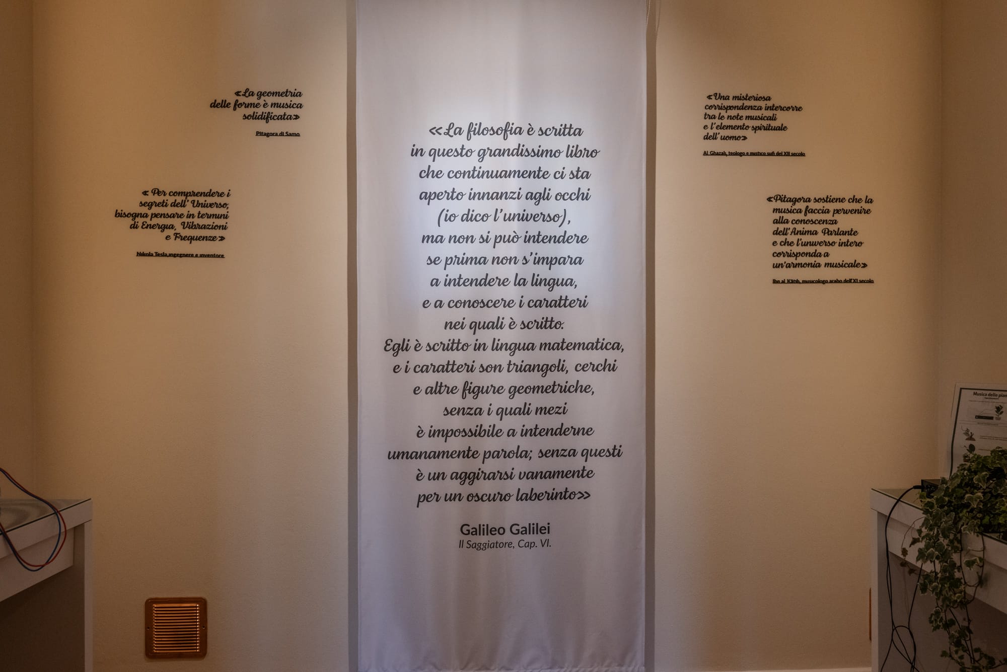L’ultima sala si propone di far capire al visitatore come il suono, alla base degli studi del Galilei, possa “informare” sia la materia sia la natura, propagandosi attraverso vibrazioni armoniche.