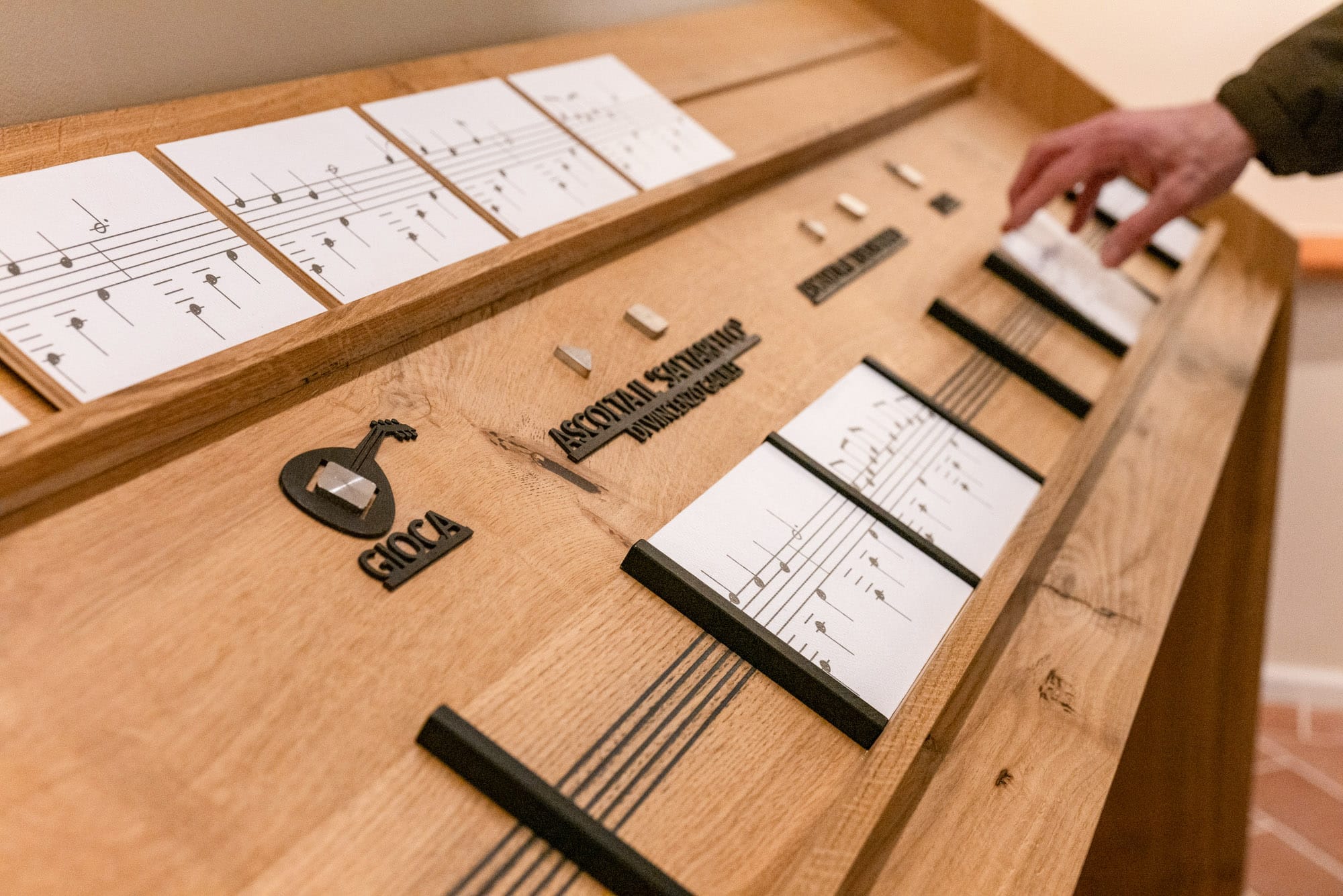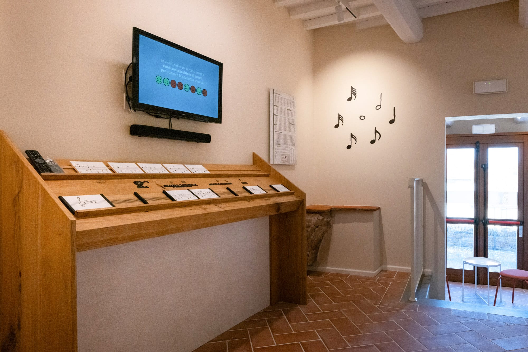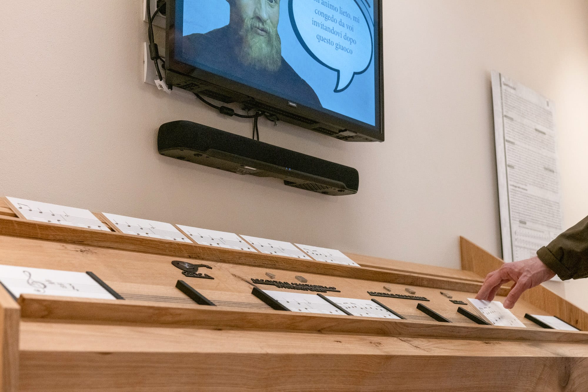 In particolare l’esposizione, allestita in modo permanente, ben coniuga al suo interno i tradizionali documenti d’archivio – provenienti dall’Archivio Storico Comunale – a postazioni interattive e immersive dedicate alla musica, fulcro di tutto il percorso e che ben si prestano sia ad un pubblico di bambini e ragazzi sia ad un pubblico adulto.