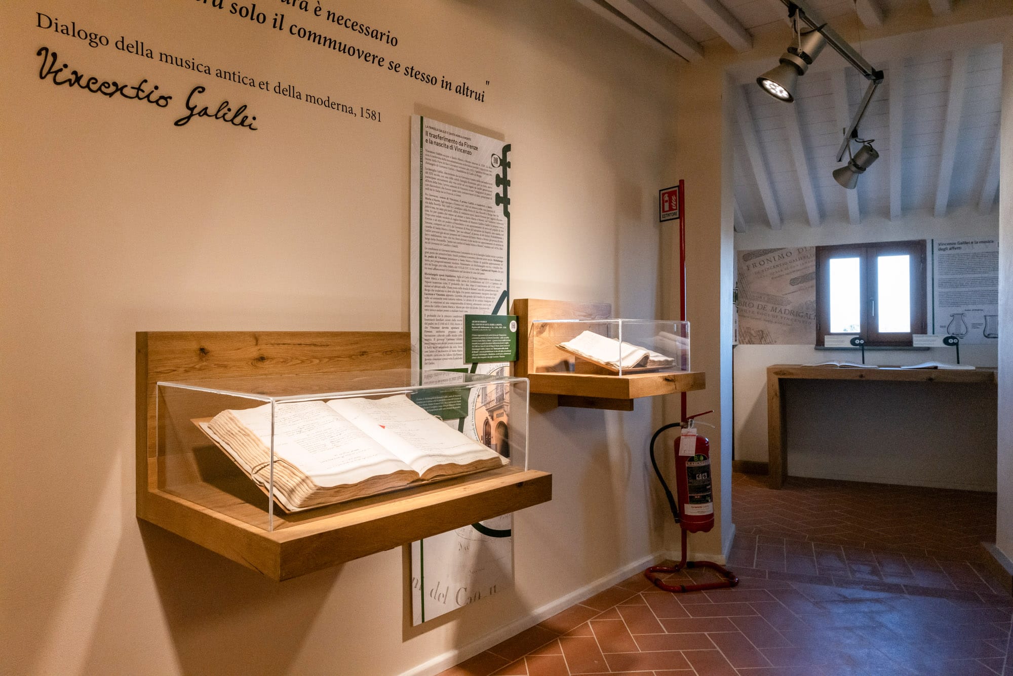 Inaugurata nel gennaio 2024, l’esposizione mira a restituire la giusta dignità ad uno dei figli più illustri ma meno conosciuti di Santa Maria a Monte: Vincenzo Galilei, nato nel borgo “a spirale” nel 1520. Quest’ultimo, oltre ad essere il padre del grande Galileo, fu infatti una figura di spicco nel panorama teorico musicale del Rinascimento italiano. Alla sua attività di compositore e liutista aggiunse quella di teorico, caratterizzando e sostenendo le importanti tematiche del gruppo di musicisti, letterati, filologi e “nobili fiorentini”, la Camerata de’ Bardi, che sul finire del XVI secolo portarono alla nascita del Recitar cantando e del melodramma.