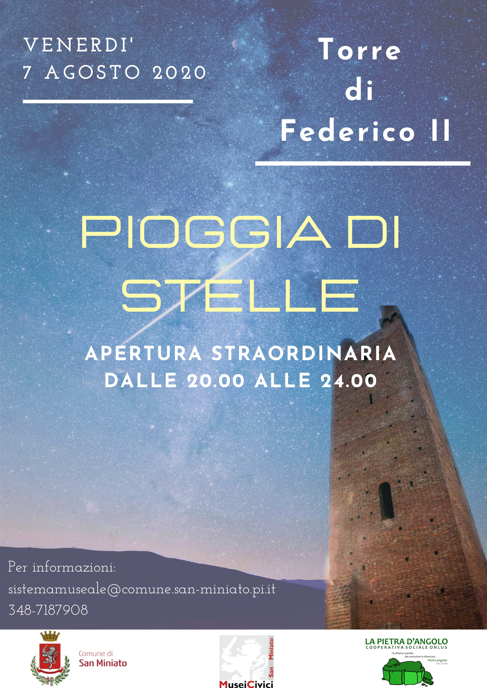 PIOGGIA DI STELLE IN ROCCA Gallery PIOGGIA DI STELLE IN ROCCA News_SanMiniato PIOGGIA DI STELLE IN ROCCA In vista della notte di San Lorenzo apertura straordinaria della [...] manolavincenti2020-07-31T11:45:55+02:00Tags: Aperture straordinarie, Federico II, Museo Civico, osservazione delle stelle, rocca, san miniato|