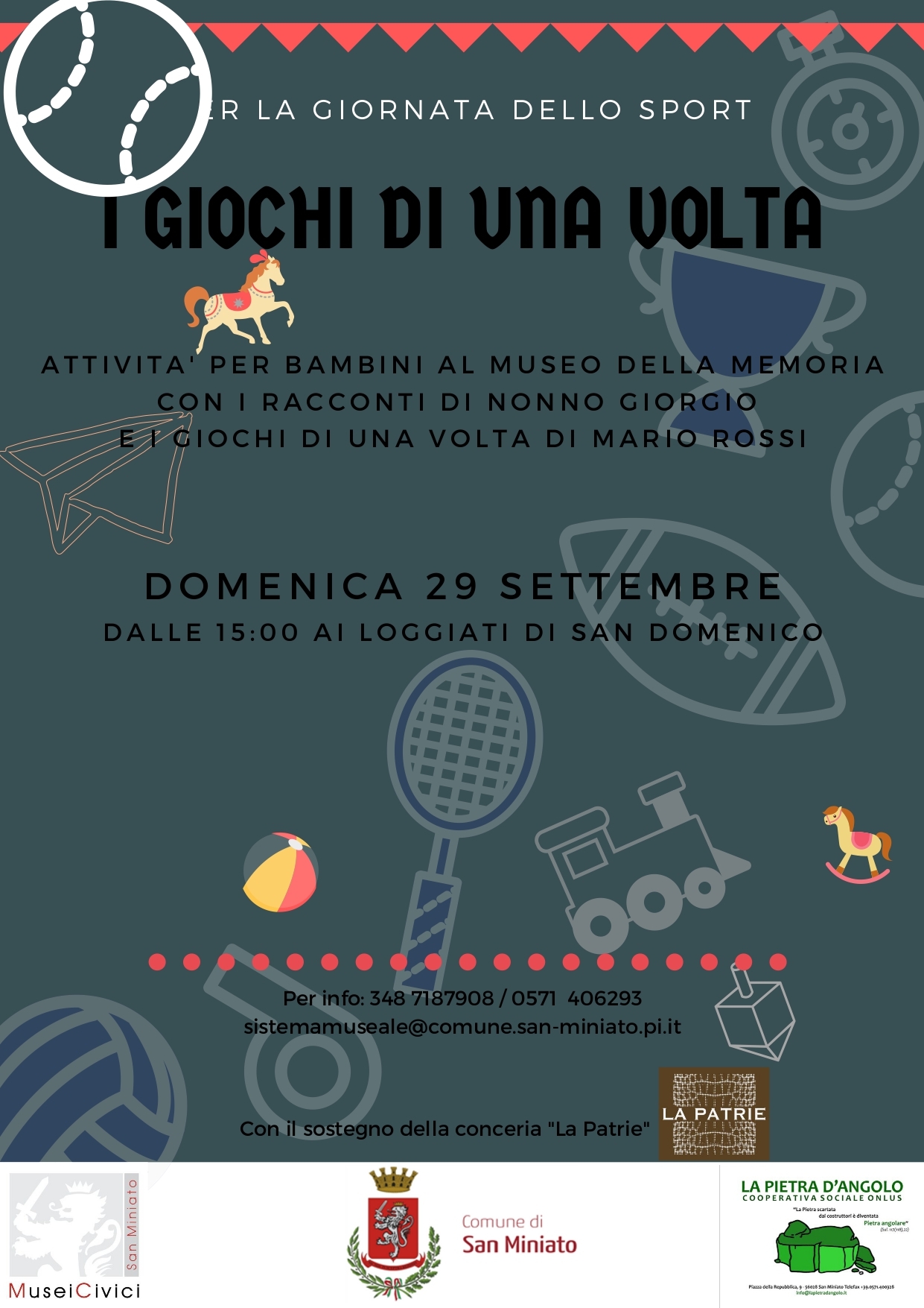 Festa dello sport_ I giochi di una volta Gallery Festa dello sport_ I giochi di una volta News_SanMiniato Festa dello sport_ I giochi di una volta Domenica 29 settembre 2019 si terrà nel centro storico di San Miniato [...] manolavincenti2019-09-21T12:46:32+02:00Tags: Festa dello sport, Museo Civico, san miniato, valdarno musei|
