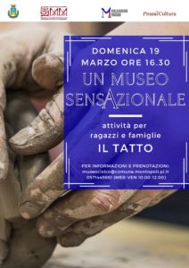 Domenica 19 marzo alle ore 16.30, il primo dei 3 incontri con attività per bambini e famiglie al Museo Civico di Montopoli “Un Museo SensAzionale”: dedicati all’esplorazione sensoriale attraverso le opere e i nuovi modelli tattili del museo. Le attività si svolgeranno con cadenza mensile da marzo a maggio.